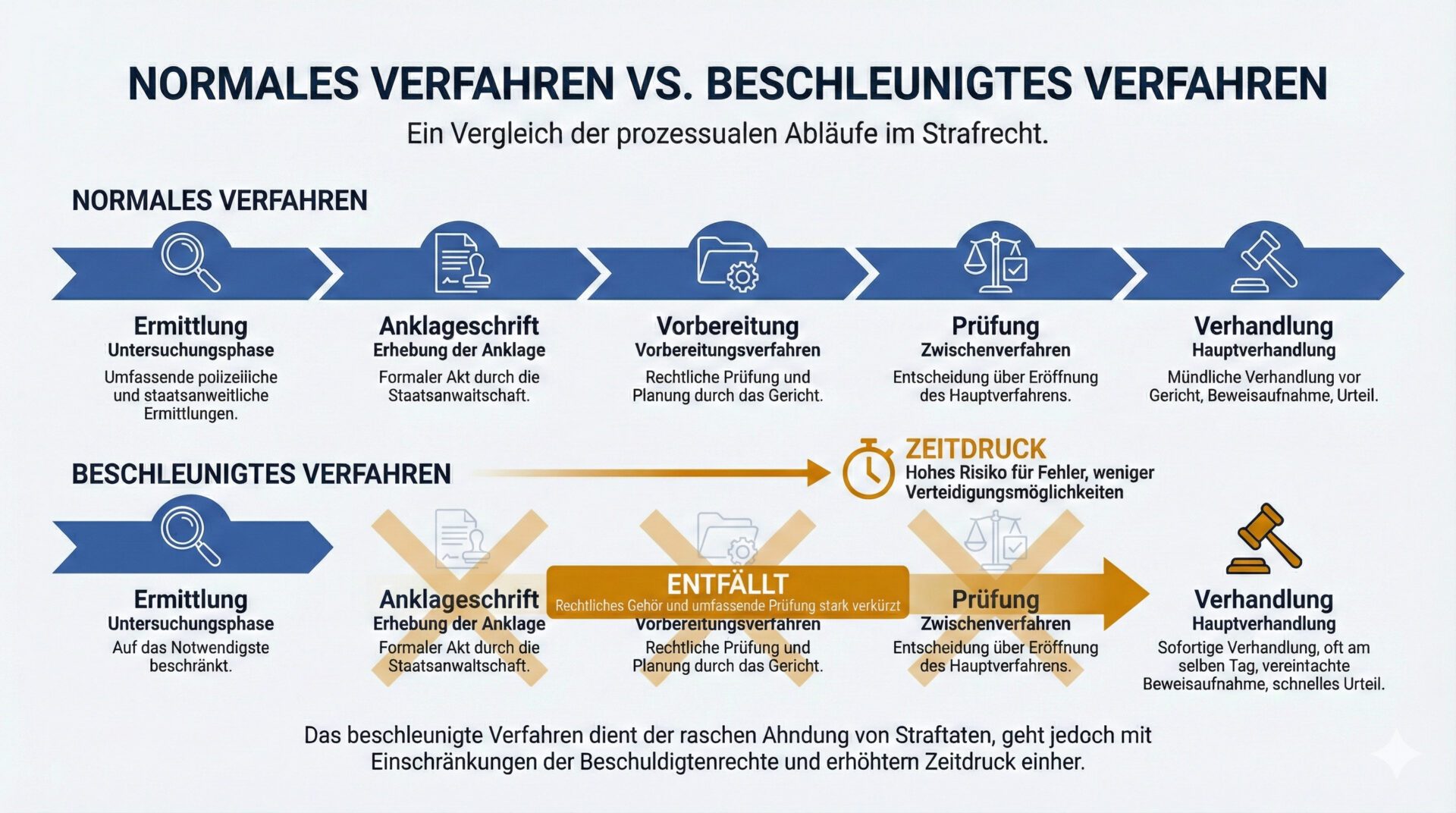 - Wie unterscheidet sich das beschleunigte Verfahren vom normalen Strafprozess?